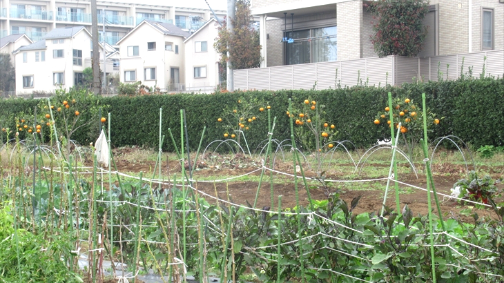 1時間ほど取材した後、かなっぱ畑の会のボランティアさんが援農で色々な野菜栽培を行っている農地の広さは体育館くらい。