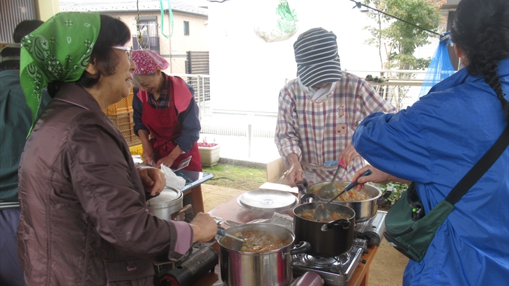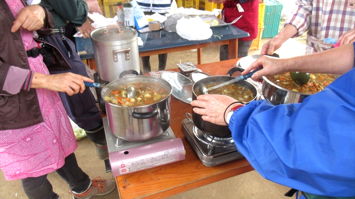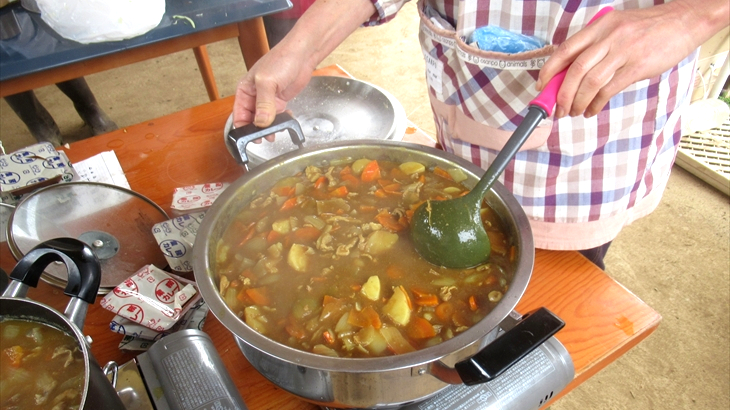 講座最終日は恒例のカレーパーティです。作業場では楽しく調理中、美味しそうな匂い・・・