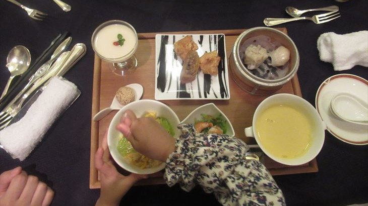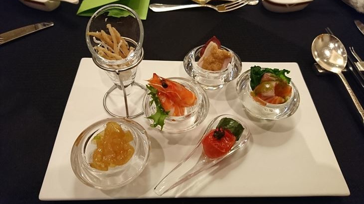 17時30分、翠陽コースの一品目(色鮮やかに盛り付けたチャイニーズオードブル)で本格的にお食事開始。