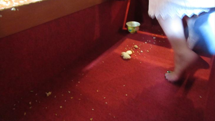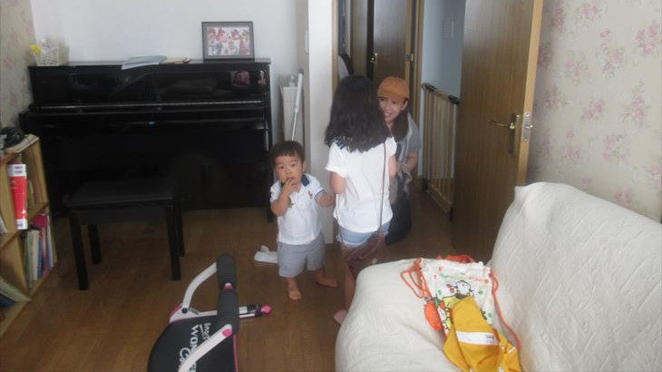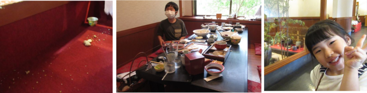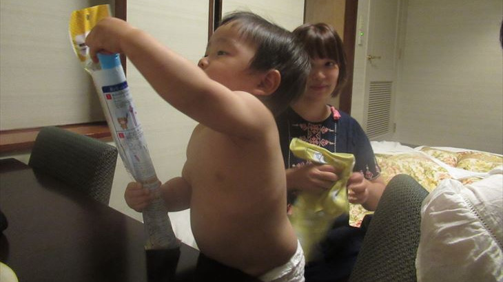 お子様うどんの腰が強く、1歳では食べられないと判断、半ライスをお願いし携帯カレー。なんでもポイポイする利太郎くん(1歳)、目を離した隙にカレー半ライスを掘りこたつの床にポイ。次女が入り込み最後にお掃除です。