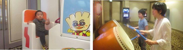 利太郎くんはアンパンマンの自動車、トシ君は太鼓の達人に挑戦。楽しいひと時でした。