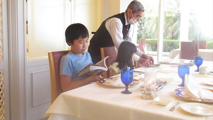 約1時間30分ほど遊んで、お風呂に入りお部屋で少しゆっくりして夕食会場のラペールに向かいました。
