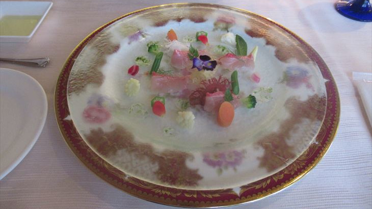 5歳のアヤちゃんは3000円のお子様コース、お腹すいたと言ってたアヤちゃん、スープ、パスタ、魚のポアレと小海老のカダイフ巻きをペロリ。和風ソースの牛肉のステーキを食べてる途中、昨年と同じく18:30疲れて力尽き寝てしましました。
