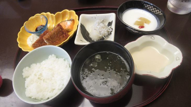 ご膳のおかず以外にせいろに入った蒸し野菜とても美味しかったです。トシいわく「朝ご飯はやっぱり黒潮だね」、完食したトシでしたが、ところてんの辛子にむせてました。