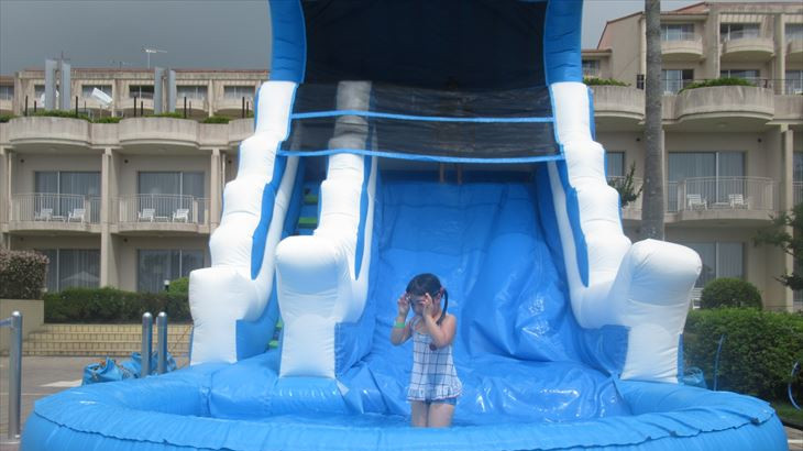 アヤちゃんはすごく楽しそうで、ウオータースライダーに挑戦、2回ほど頑張って滑りました。まだ遊びたそうだったので11時のチェックアウト延長をフロント打診したところ、会員のチェックアウトは12時、ラッキー!