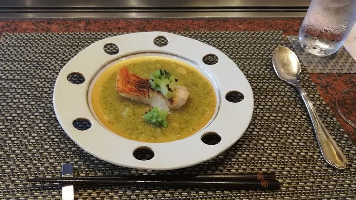 お風呂に入り、夕食会場の鉄板焼きコーナに向かったのは17:30。鉄板焼きコーナのお客様は我々を含め2組4名、和食会場も空いているようです。
