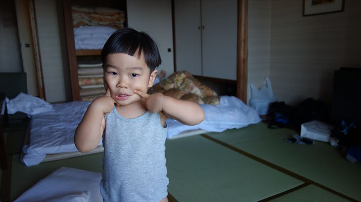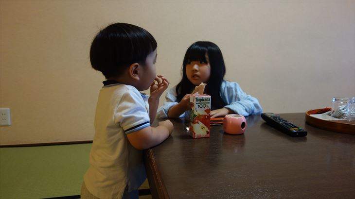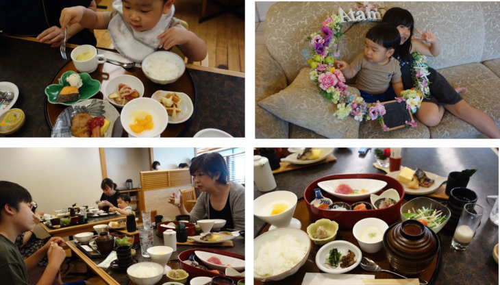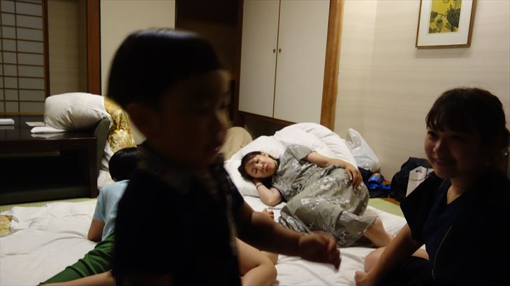 そして、約1時間10分経過した20時30分ころ、利太朗くんが眠くなったので子供たちはタクシーで先に戻りました。トシ君と我々は21時ころ食事終了して夜散歩、温泉に入り就寝しました。