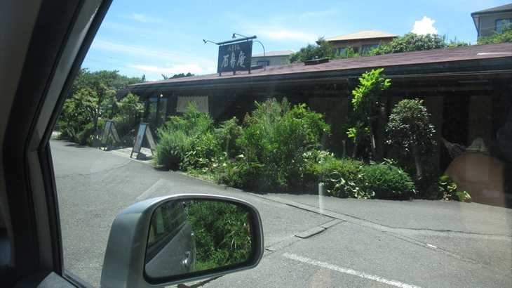 お土産の定番は伊東の「石船庵」に立ち寄りお買い物、孫達は疲れたのか車の中で寝ています。