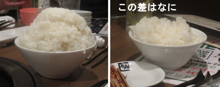 超大盛りご飯のてんこ盛りにビックリ、同じものを追加注文した時の盛り具合に差があったのにもビックリです。