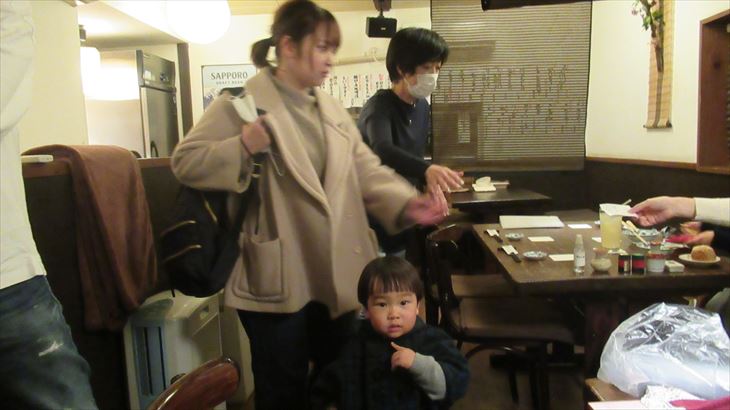 1歳半の利太朗くんは忘年会が終わるまで一度も泣き出すことはなくニコニコ。皆に可愛がれとってもいい子でした。21時ころお開き、次女達は六角橋交差点まで一緒に歩きタクシーで帰りました。利太朗くんはすぐ寝たようです。