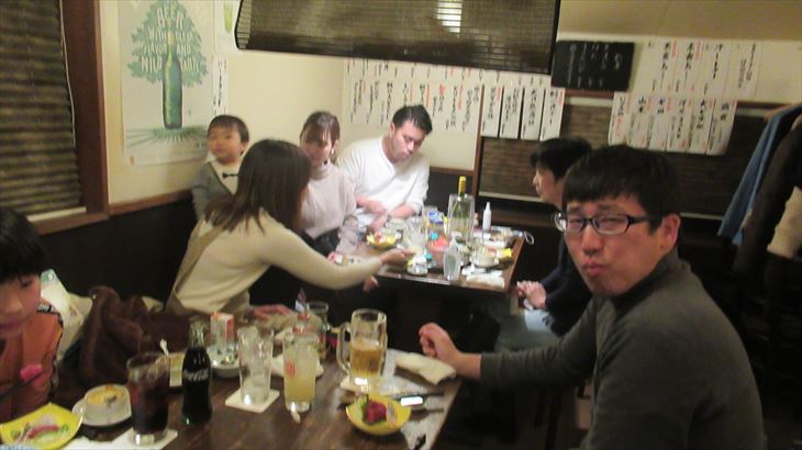 コロナ禍の2020年12月5日、長女家族4名・次女家族3名・我々2名の岩間家の親族全員集合。白楽の人気居酒屋「松太郎」の2階を貸し切り、早めの親族忘年会を開催しました。
